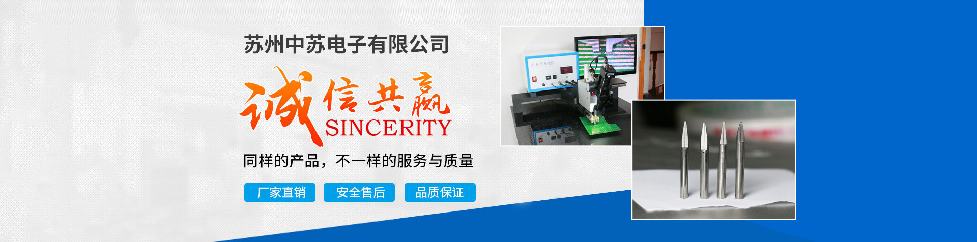 蘇州中蘇電子有限公司是一家專業服務于焊接行業的技術公司。先后在深圳,廣州,北京,上海,溫州等地設點,于2005年設立蘇州吳中辦事處,后在蘇州工業園區成立中蘇電子。公司的宗旨是通過新型的點焊技術,讓更多的生產企業能在微型焊接技術的協助下,更有效地生產精品質的產品,更精確地研發先進有競爭力的新產品,為精密電子元器件,各類IT零件產品,軍事電子專門產品,微細電子技術的發展提供支持