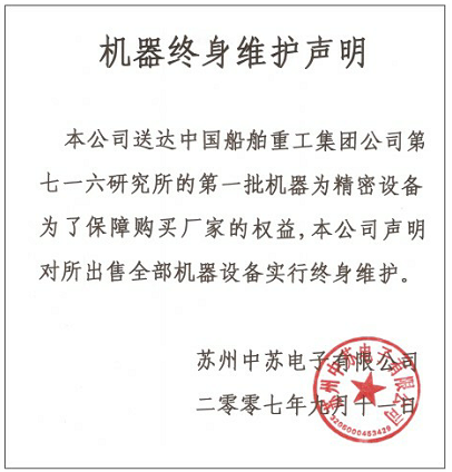 一、機器購買享受終身維護服務、機器終身維護,一旦選購,永久無憂。(終身維護協議書)